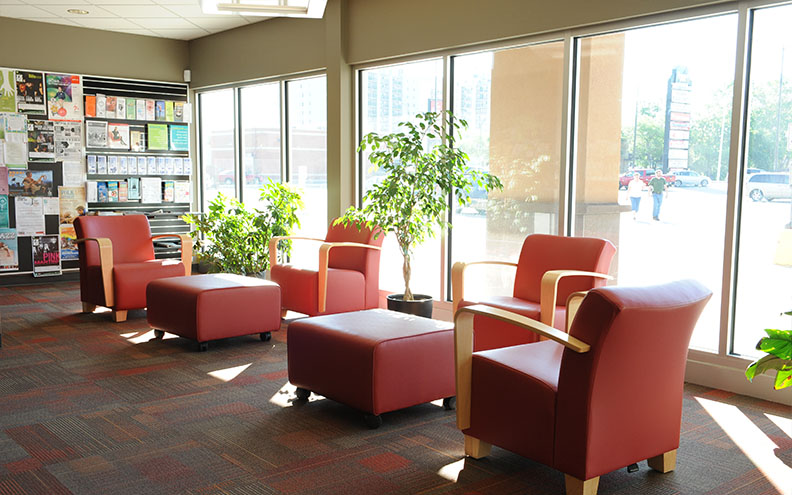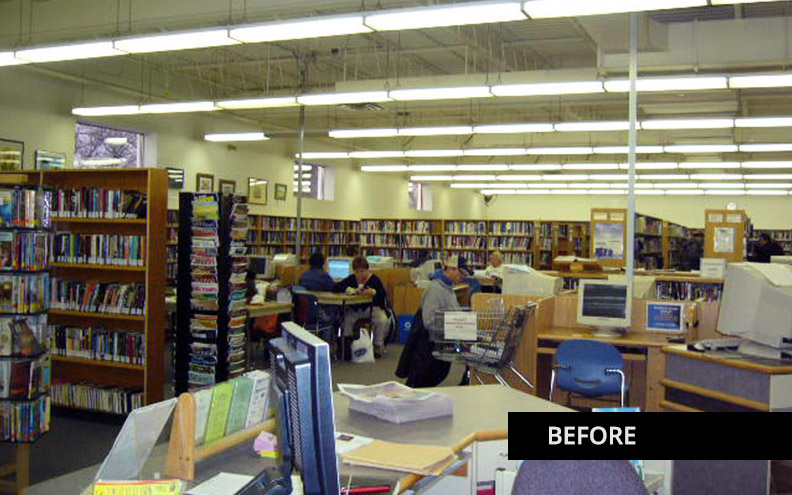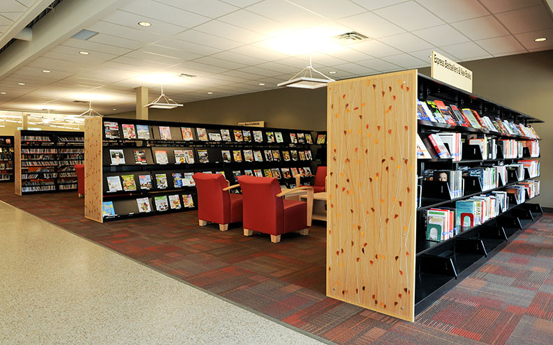 The existing space was being increased for a total of 18,000 square feet and the library was taking over the next tenant space. Many walls came down which meant a lot of electrical and mechanical relocations needed to be made. Synergy Interior Design Inc. acted as the prime consultant on this project and hired the other professionals including the architect and engineers.