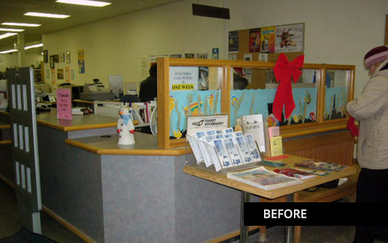 As the busiest branch in the city, Henderson Library was in real need of an expansion and renovation. See the before photo to show what it looked like before the renovation. This space was dying from being beige and worn out. Our job was to create an interior with substantial energy and flow to attract the public into the space. Our expertise in commerical interior design helped seal the deal.